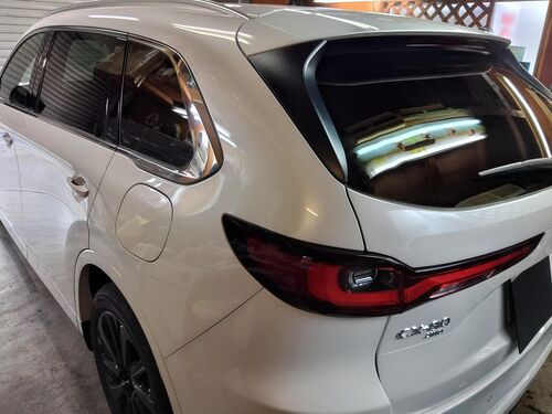 マツダ CX-80 カーフィルム施工 リア3面(スーパーダーク)カーフィルム施工 (リアドア施工無し) ¥18,000(税込み) ナンバー割なら更に¥2,000OFF 車内の冷房・暖房の効率UP!! 飛散防止!! プライバシー保護!! お子様を紫外線から守る!! 愛犬と快…